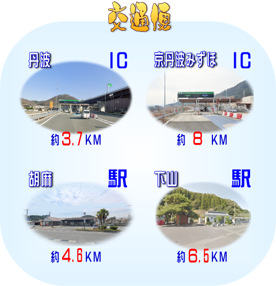 ・京都縦貫自動車道「丹波IC」より約3.7KM(車で約6分)