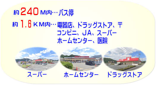 ・バス停迄約240M(徒歩約3分) |